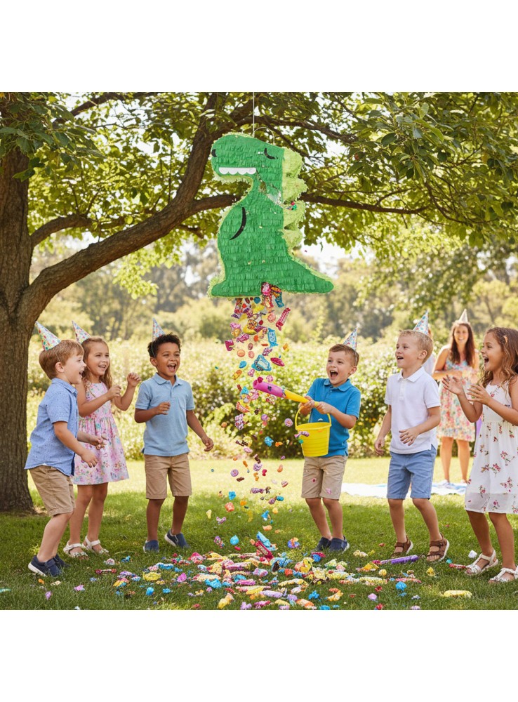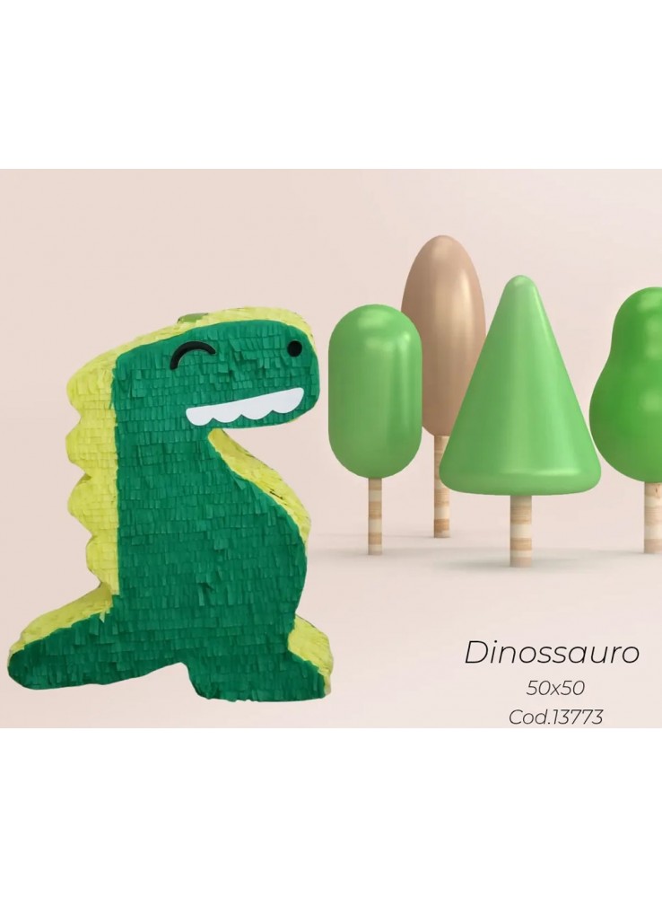 A Pinhata Dinossauro Verde suporta 3kg de doces, brinquedos, confetes.