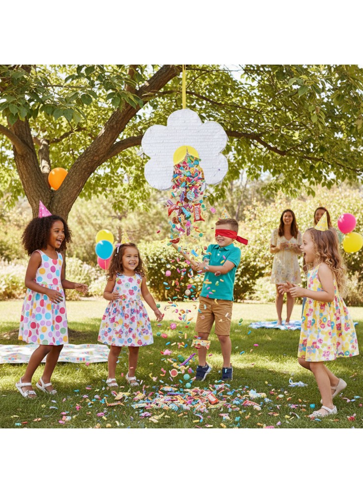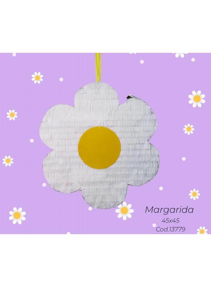 A Pinhata Flor Margarida suporta 3kg de doces, brinquedos, confetes.