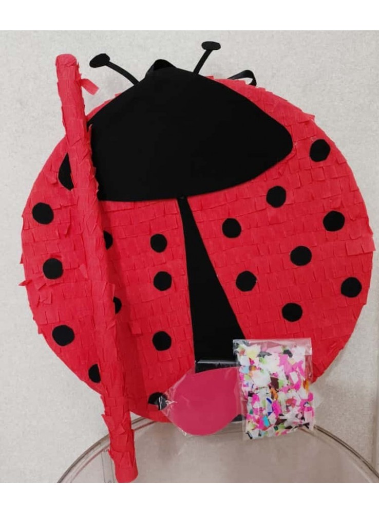 Pinhata no formato Redondo com a personalização no tema Joaninha.