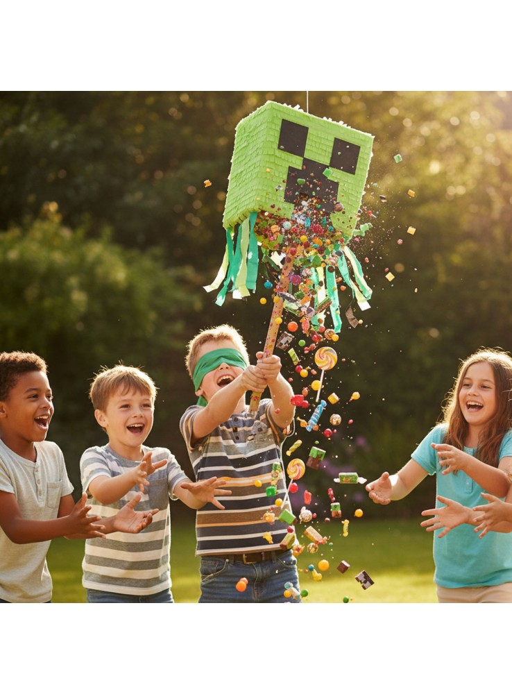 A Pinhata Cubo Minecraft suporta 3kg de doces, brinquedos, confetes.
