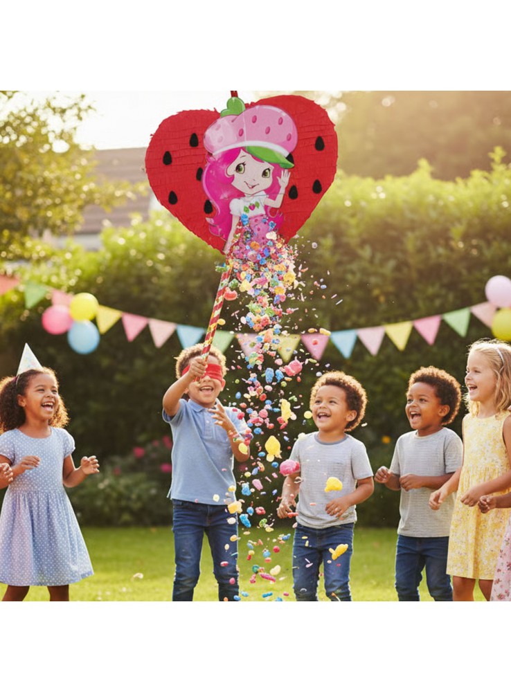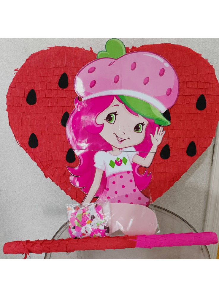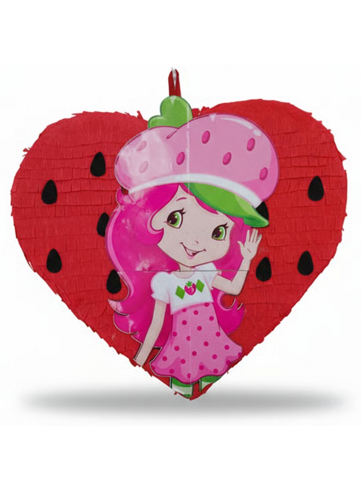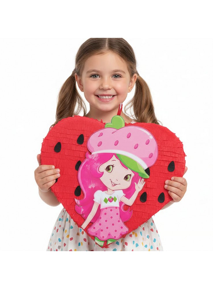 Pinhata no formato de um Coração com a estampa da Moranguinho.