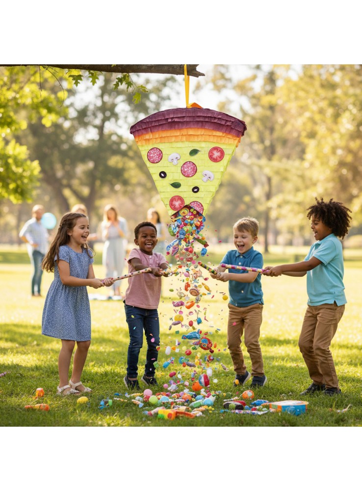 Pinhata no formato de um Pedaço de Pizza.