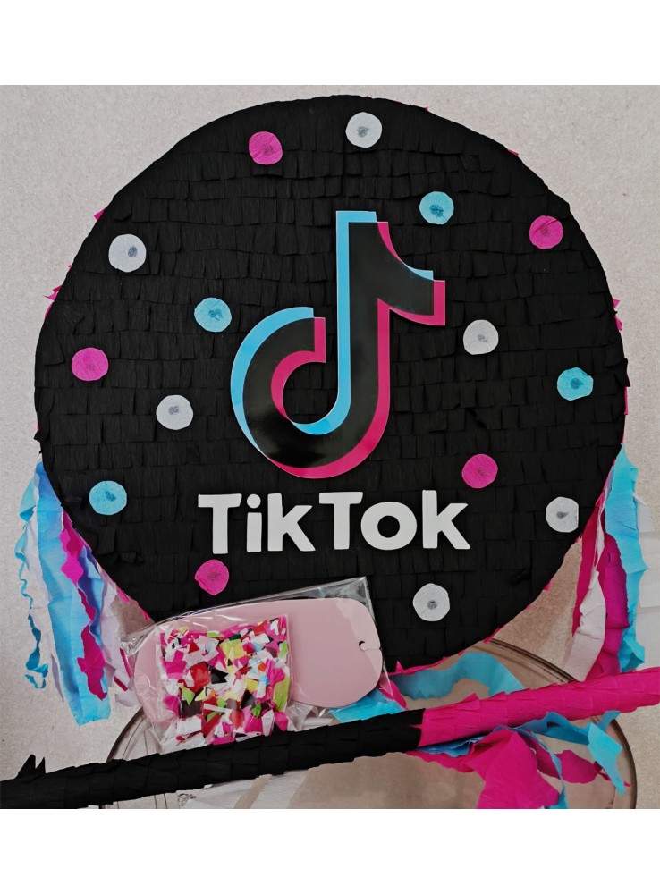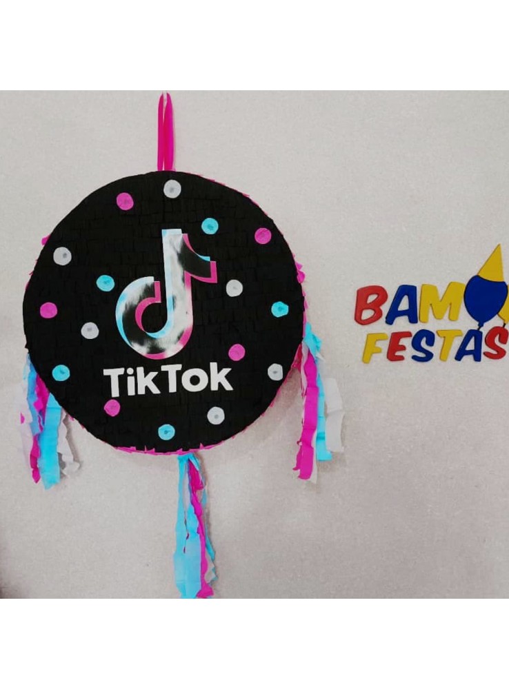 Pinhata no formato Redondo com a personalização no tema Tik Tok.