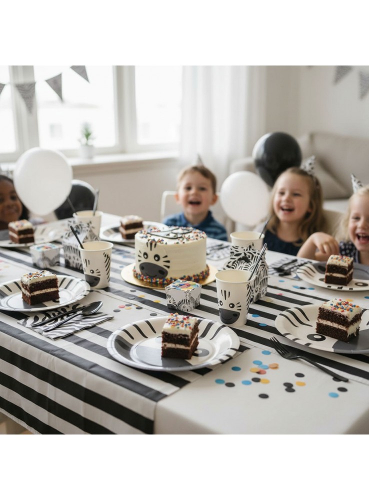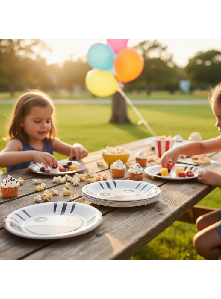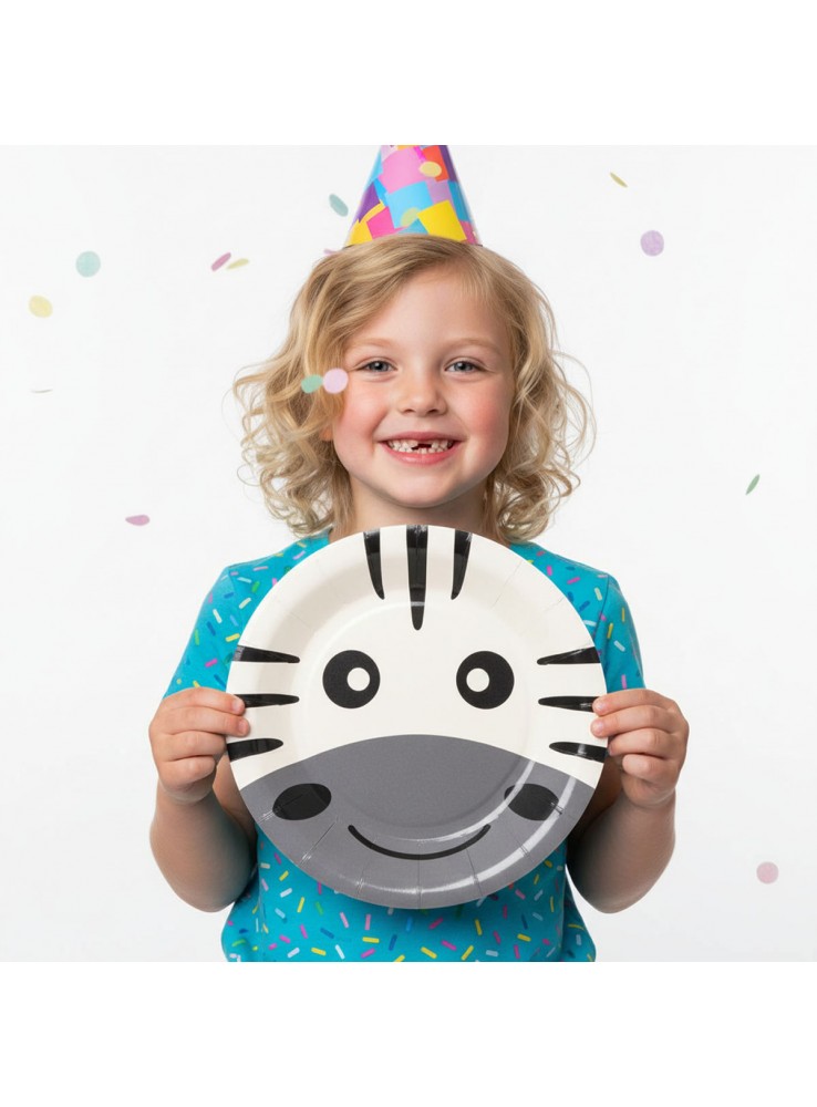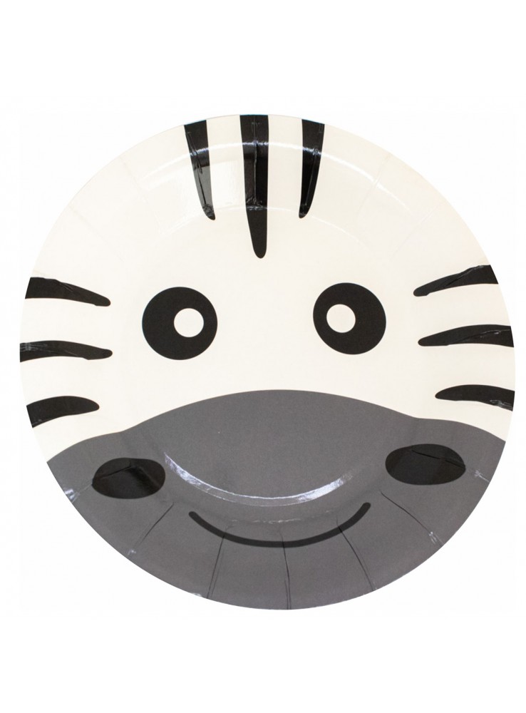 Prato de Papel no formato redondo com a estampa do rosto de uma Zebra.