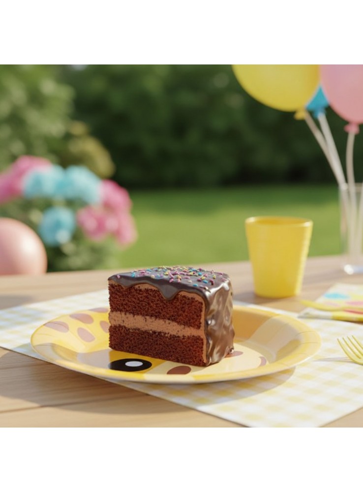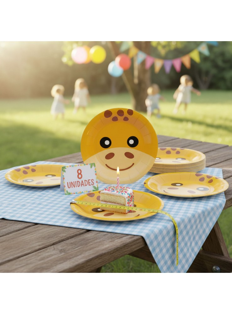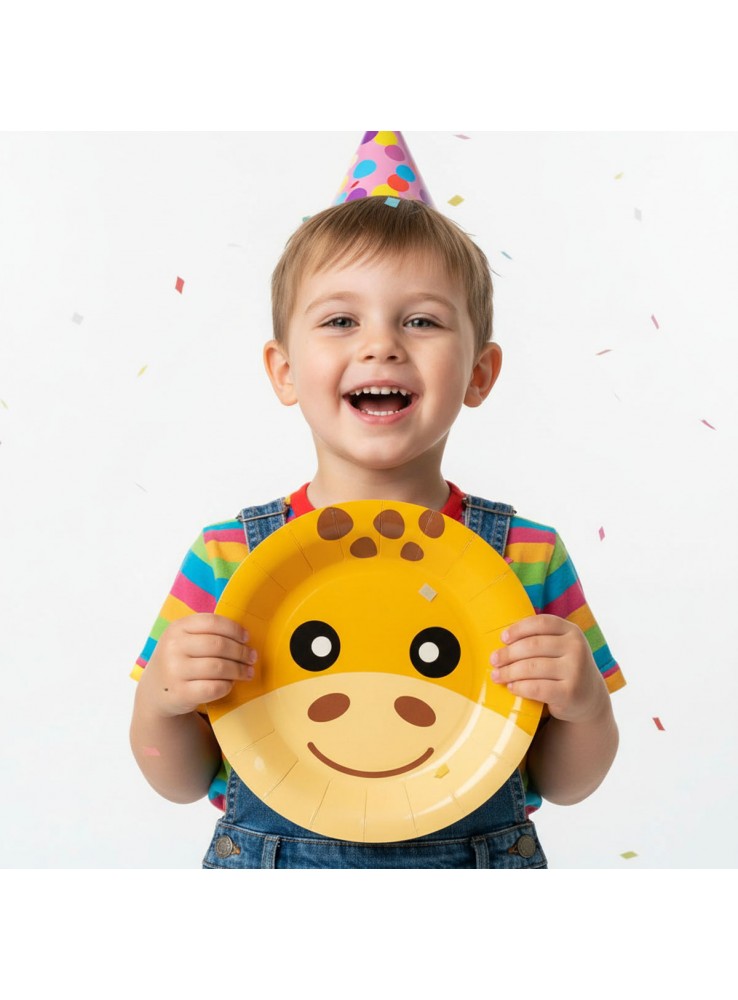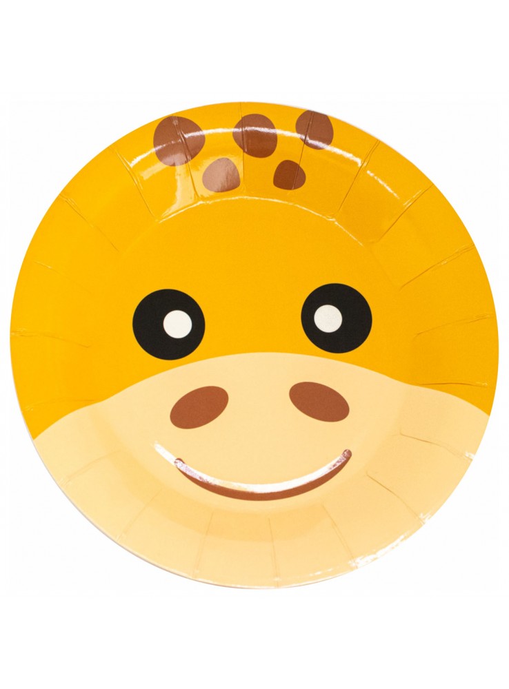 Prato de Papel no formato redondo com a estampa de um rosto de Girafa Girafinha.