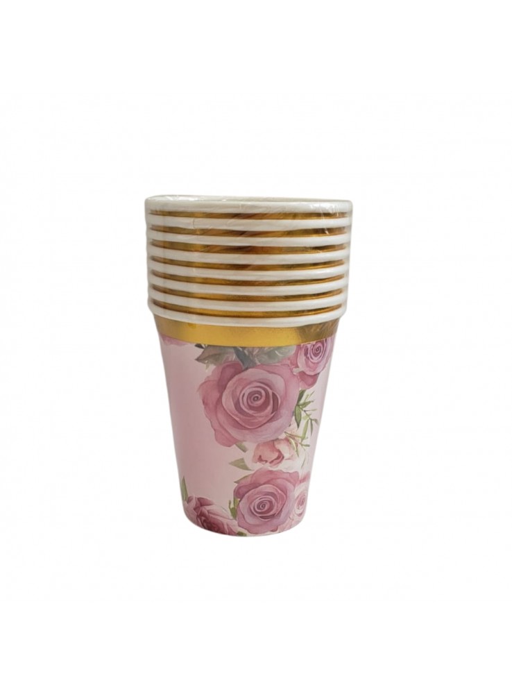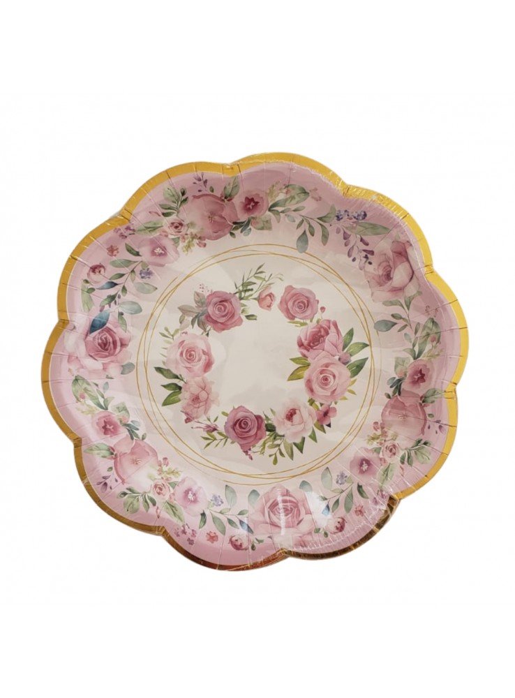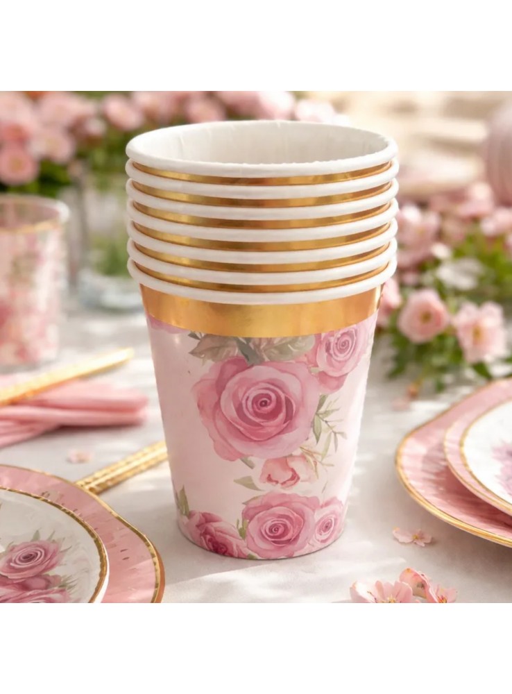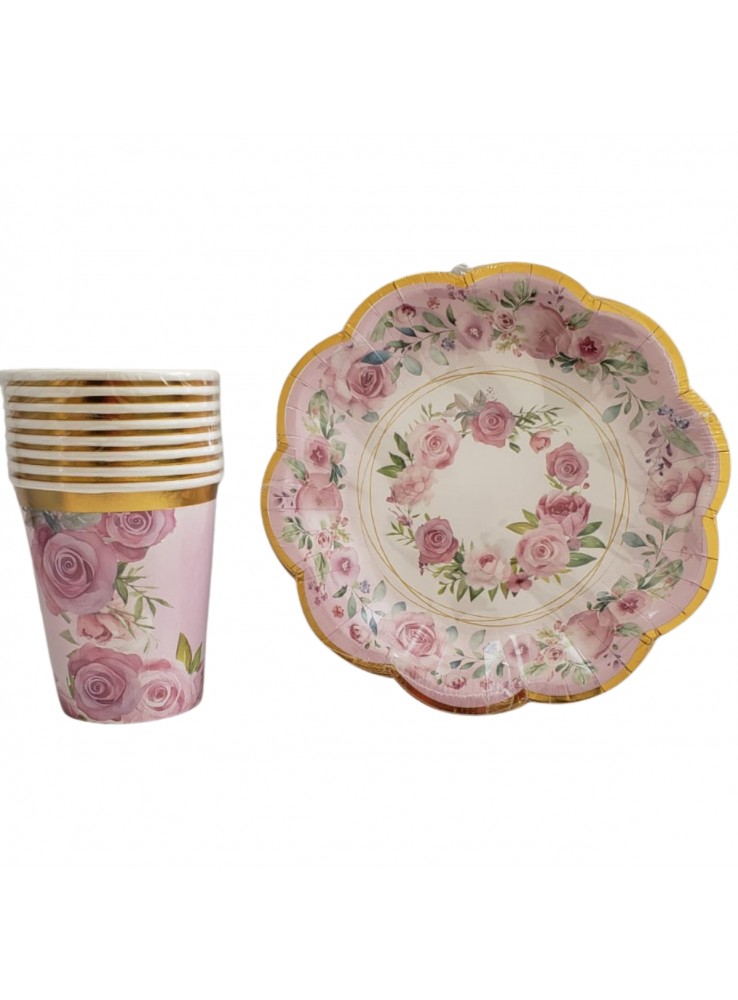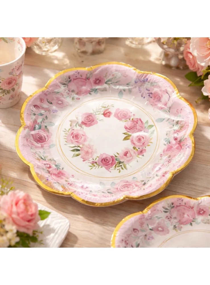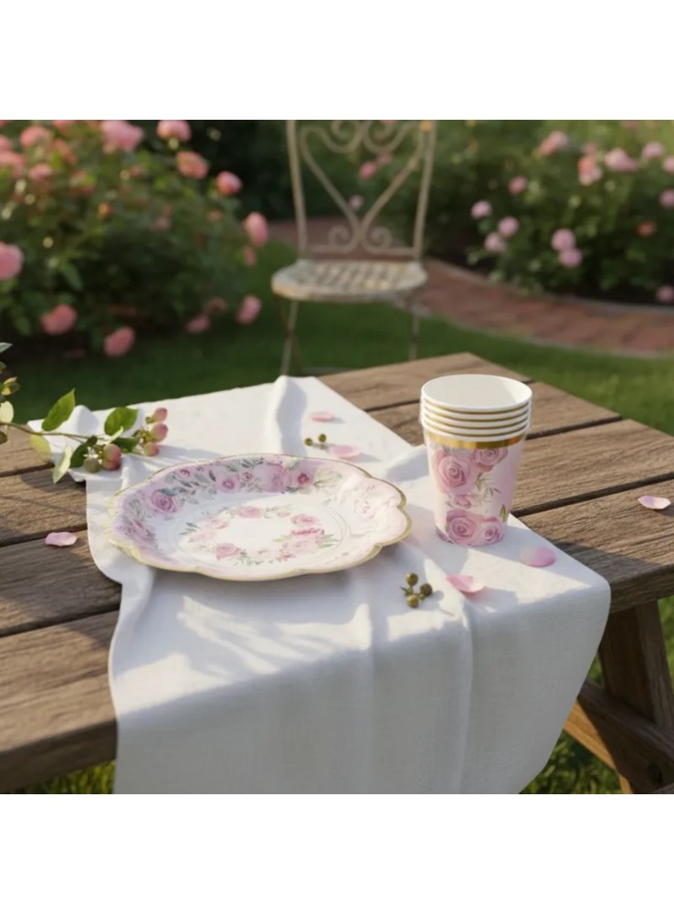 Prato e Copo de Papel Estampado Luxo Jardim de Rosas.