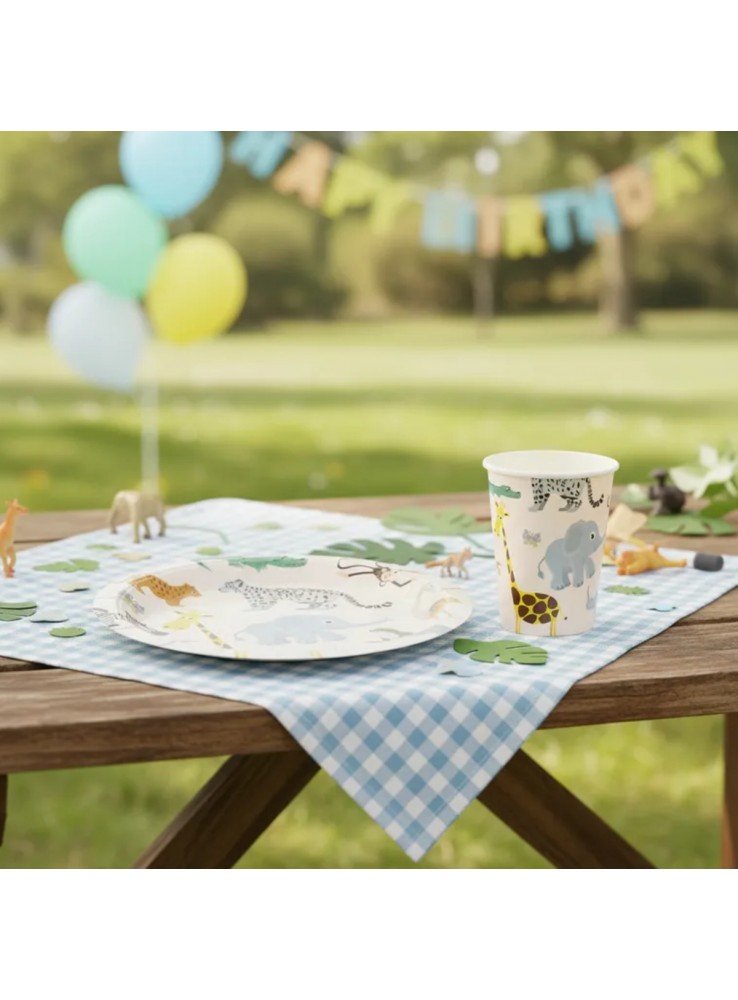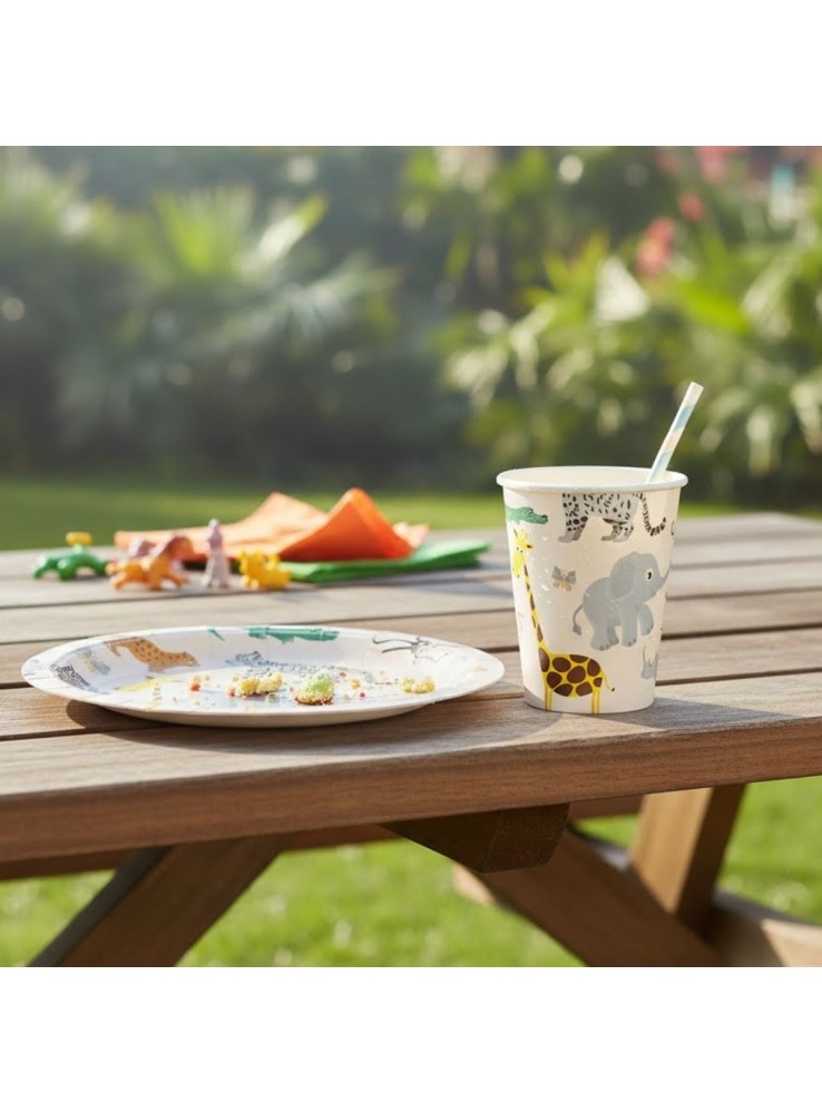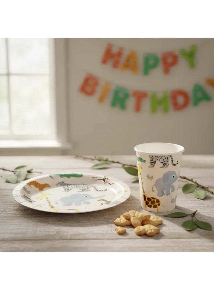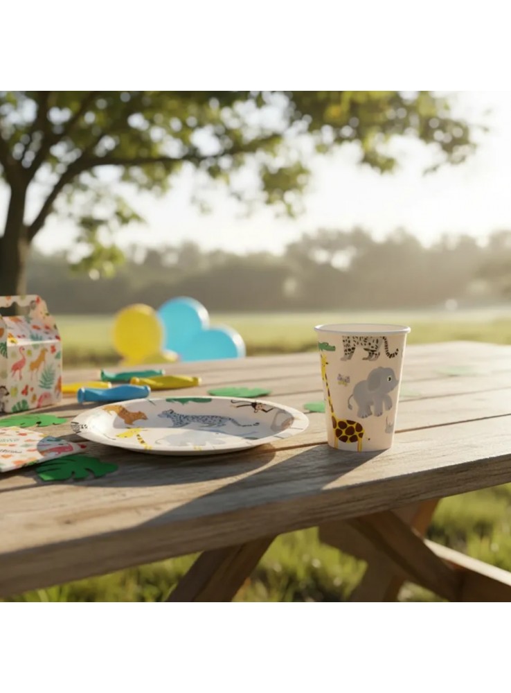 Prato e Copo de Papel no tema Safari.