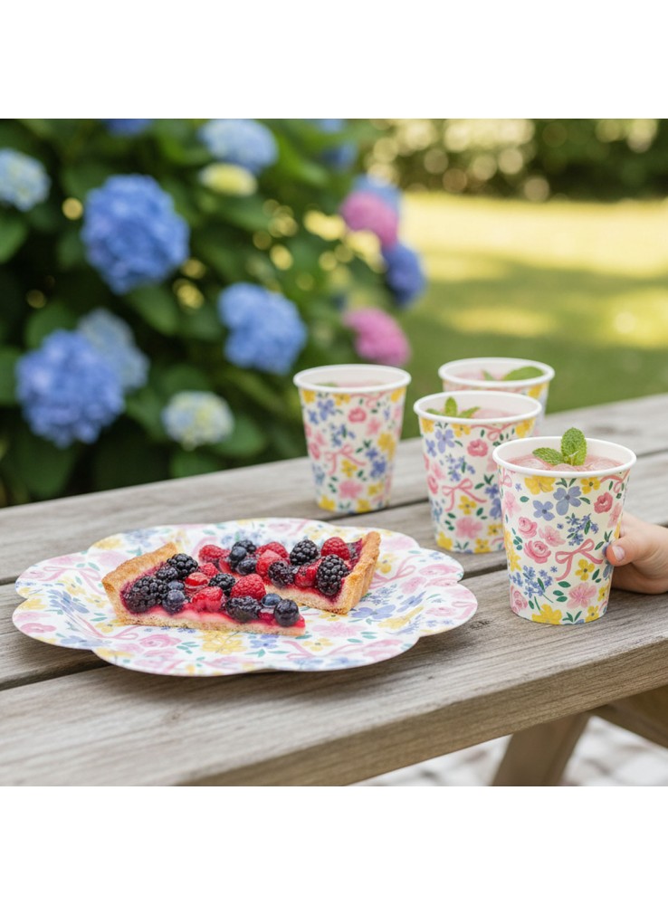 Prato e Copo de Papel no tema Festa Jardim de Flores.