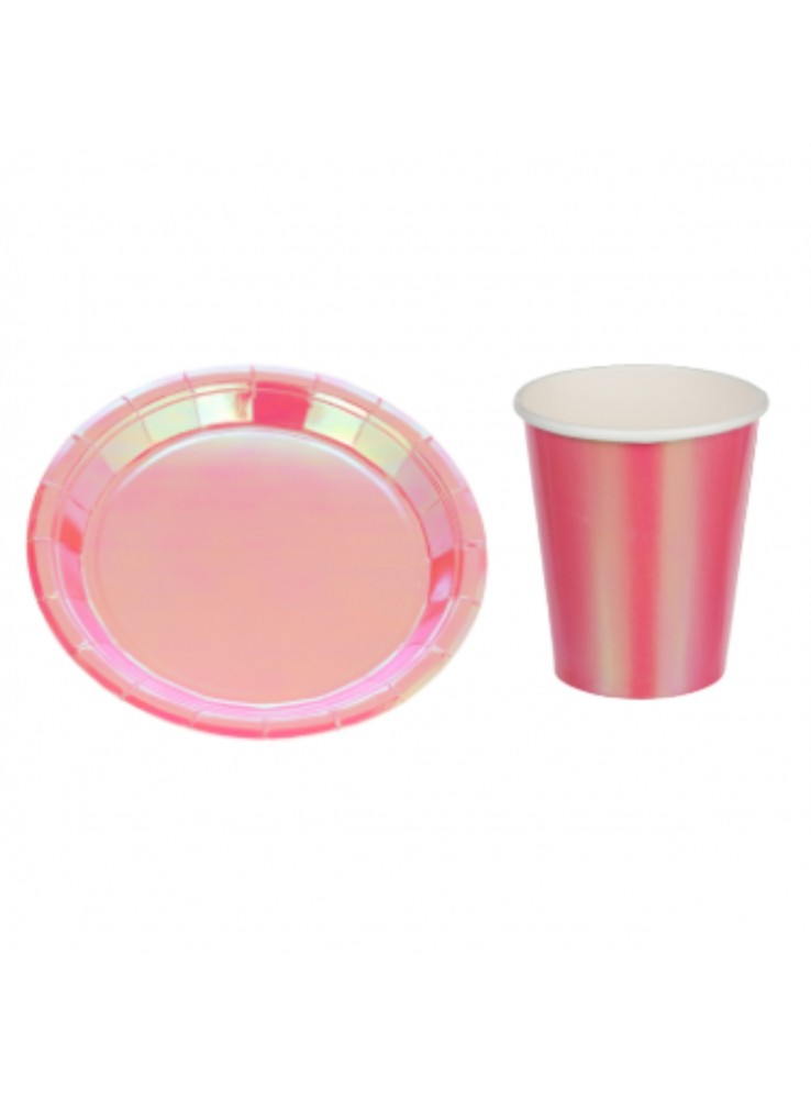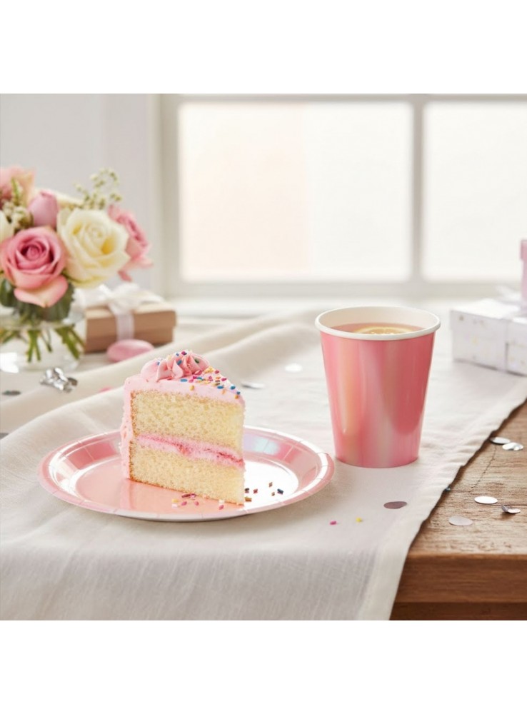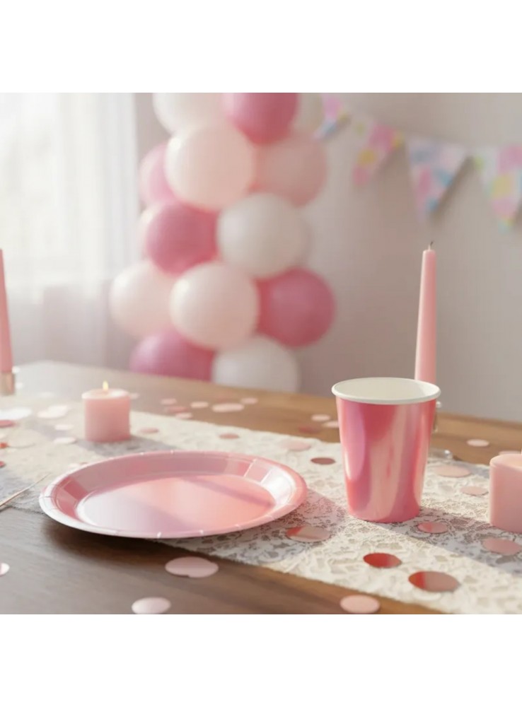 Pratos e Copos de Papel para festa na cor Rosa Bebê Furtacor.