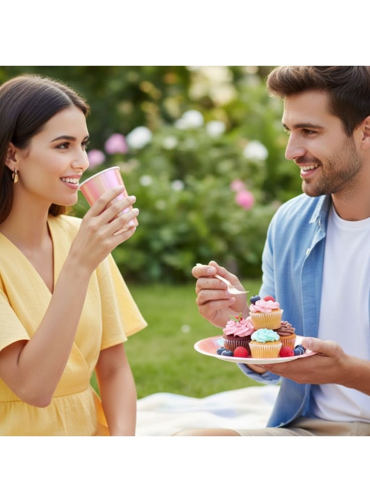 Embalagem com 10 Pratos de Papel e 10 Copos de Papel.