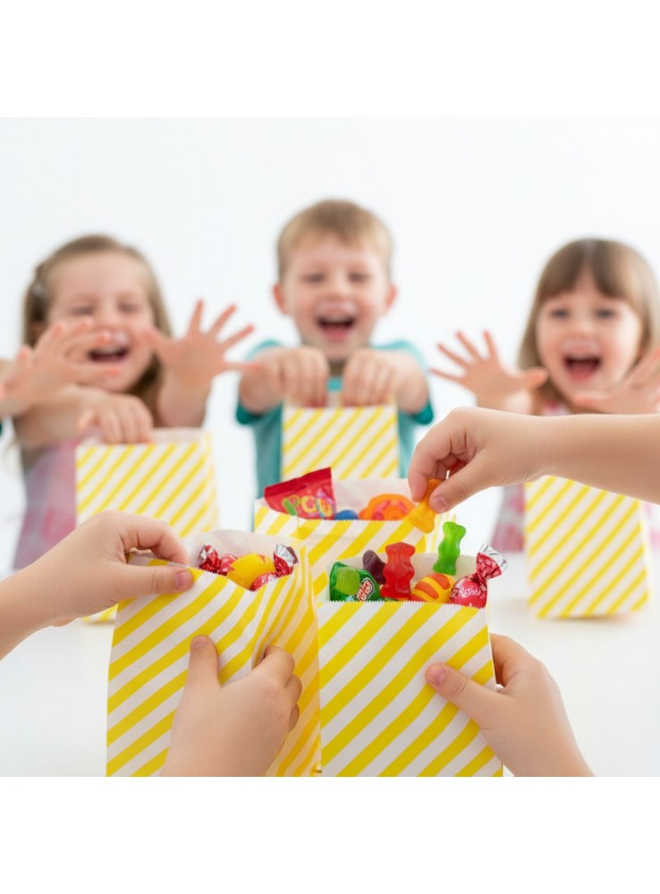 Saquinhos de Papel Amarelo Listras Oblíquo.