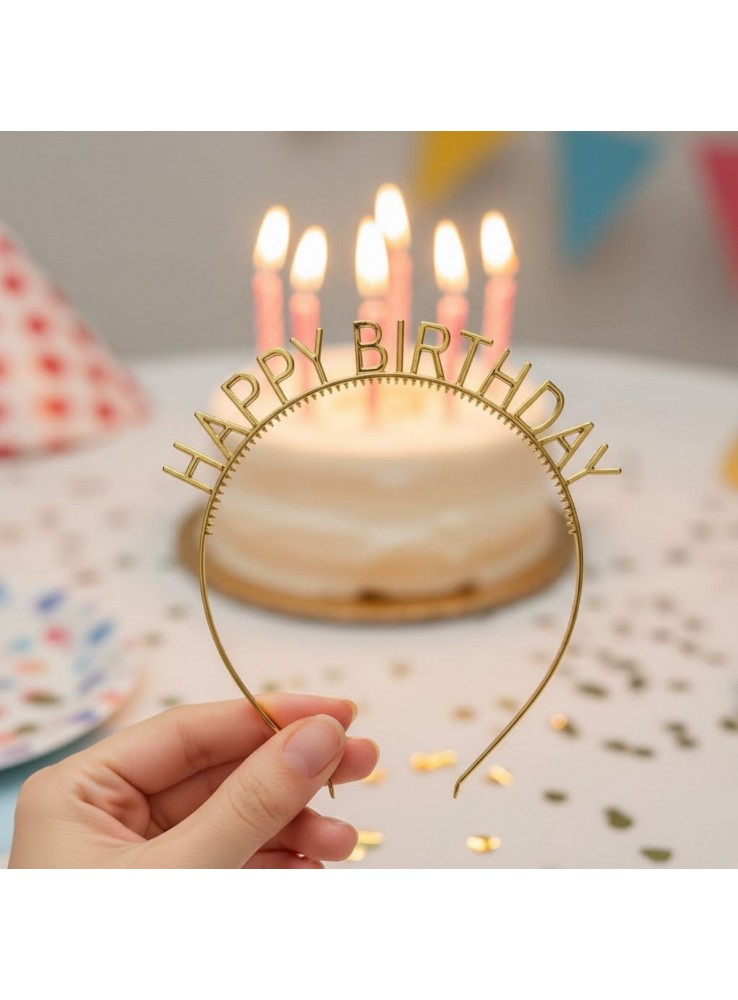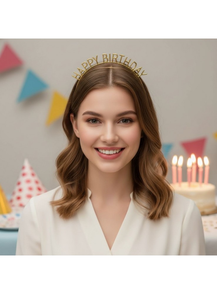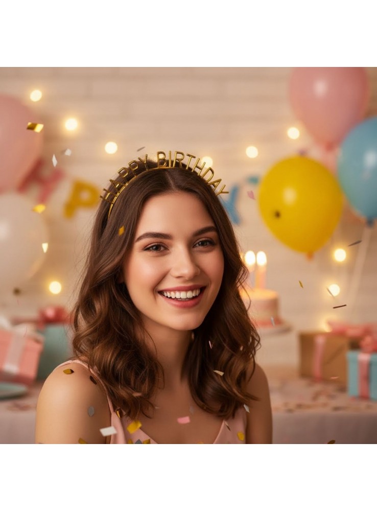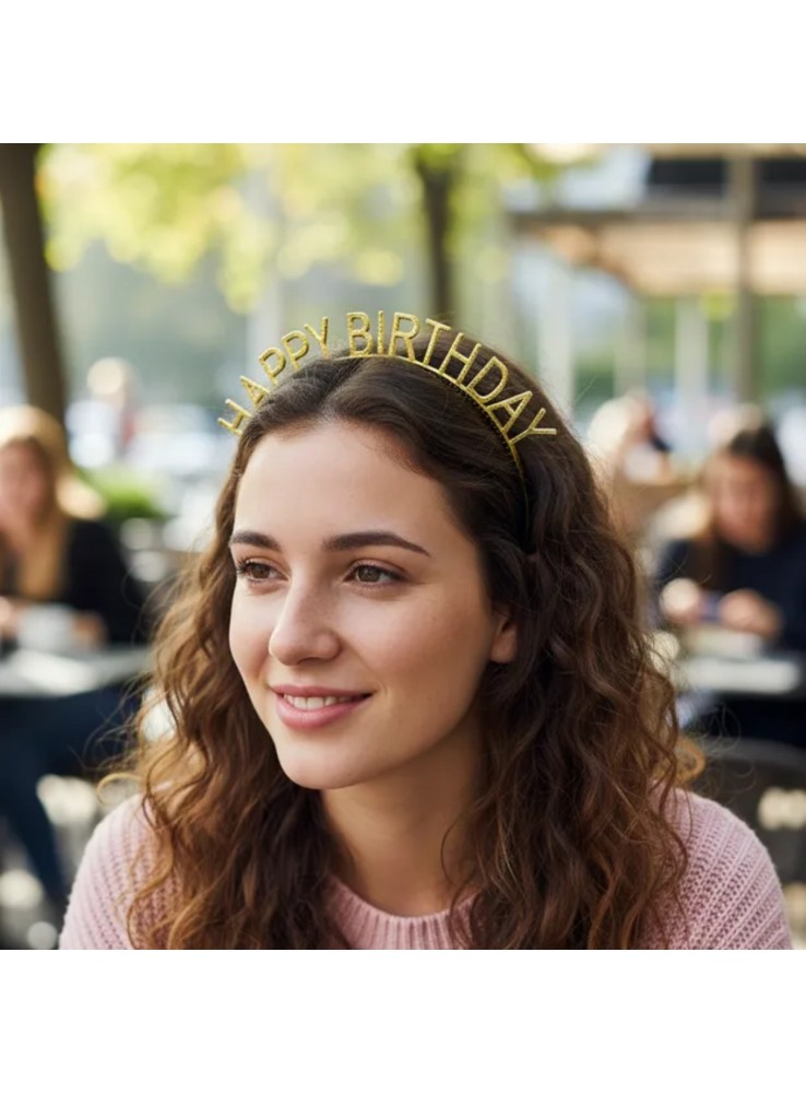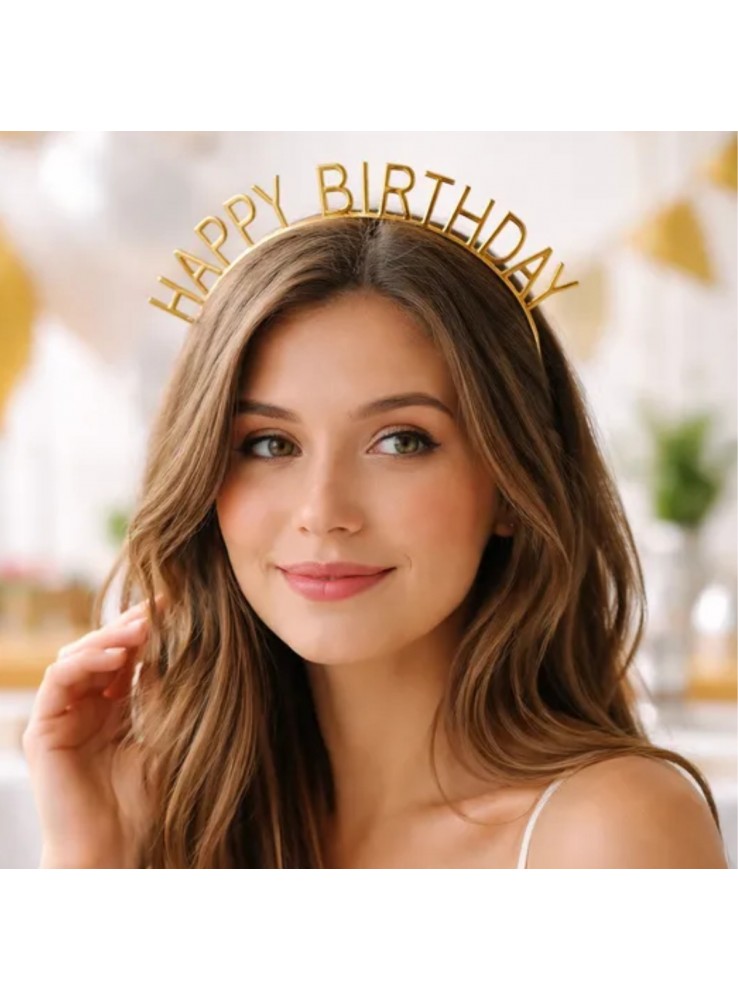 Tiara de Plástico Happy Birthday na cor Dourada.