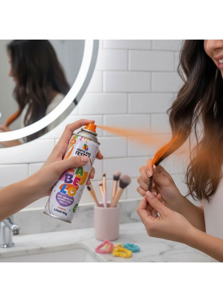 Spray Tinta temporária Pinta Cabelo na cor Laranja.