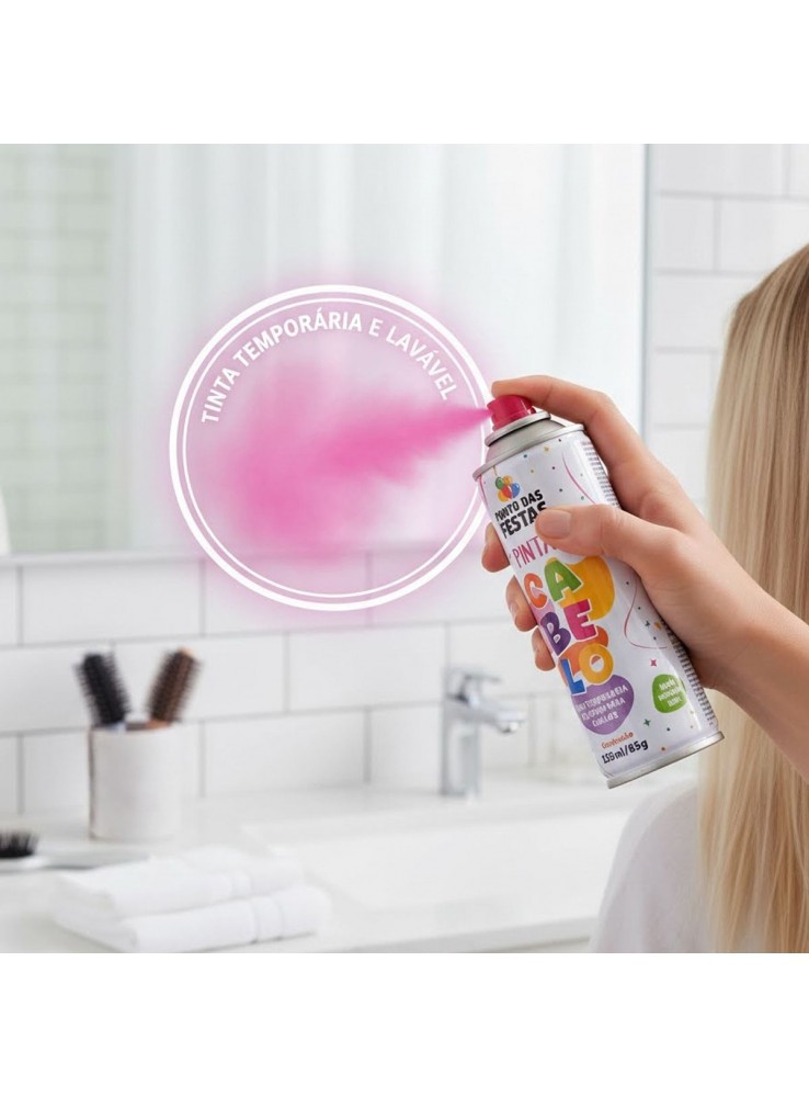 Spray Tinta temporária Pinta Cabelo na cor Rosa.