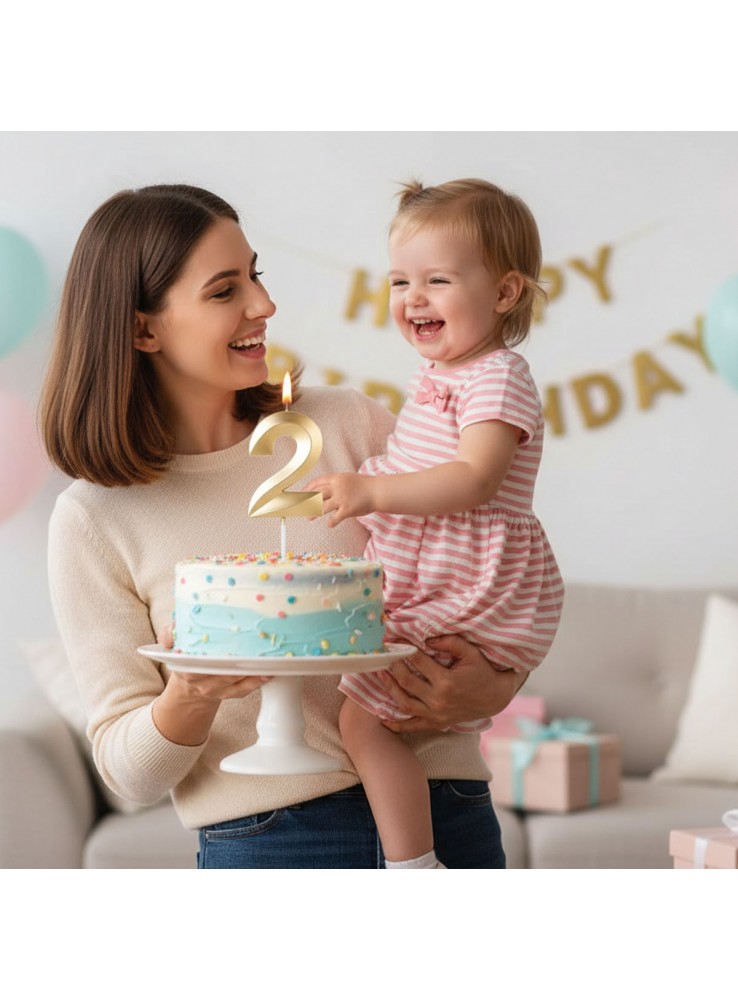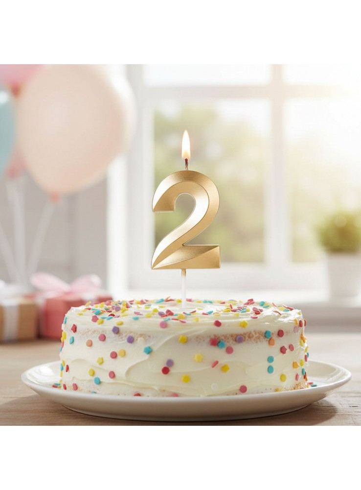 Vela de Aniversário Design Número 2 Dourada Perolizada.