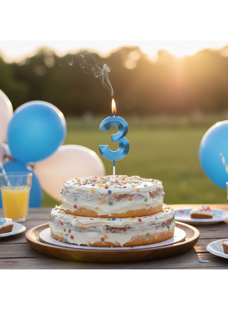 Vela de Aniversário Design Número 3 Azul Perolizado.
