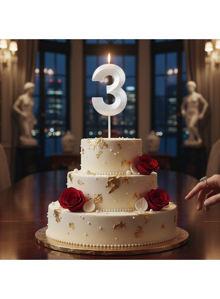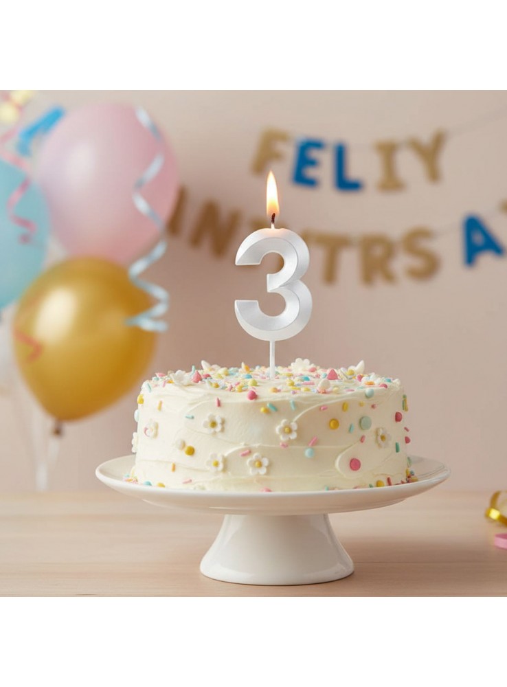 Vela de Aniversário Design Número 3 Branca Perolizada.