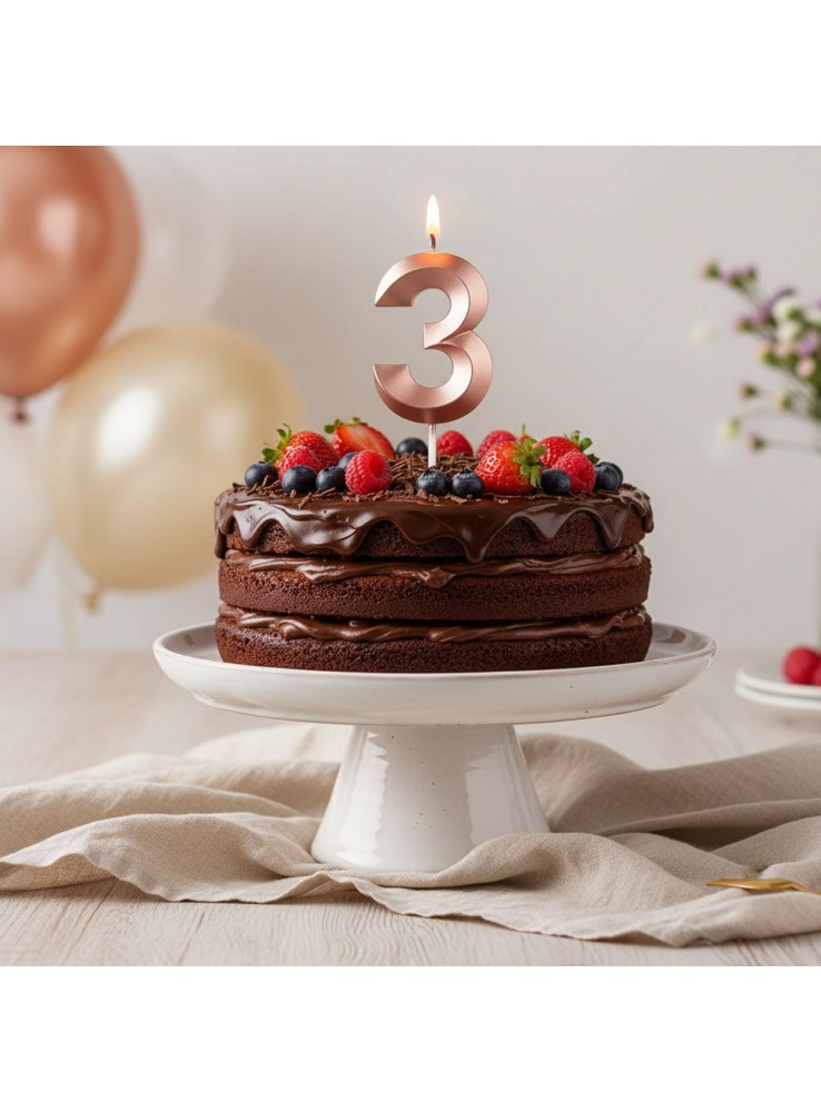 Vela de Aniversário Design Número 3 Rose Perolizada.