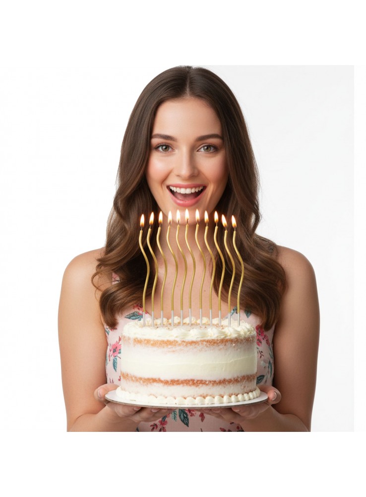 Vela de Aniversário no formato Espiral Dourada Metalizada.