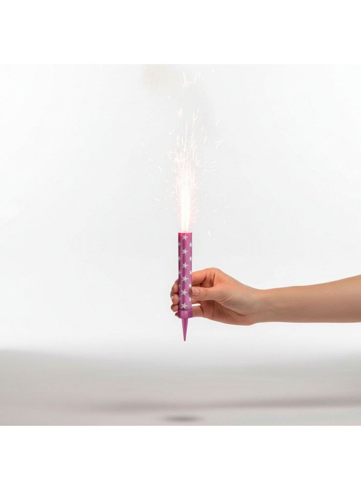Instruções: Coloque a vela no Bolo com a ponta vermelha voltada para baixo. Use o incenso, que acompanha a vela, para acendê-la, tocando-a, por alguns segundos, na parte branca no topo da vela. Surgirá, imediatamente, uma chama colorida em forma de efeito Estrelinha.