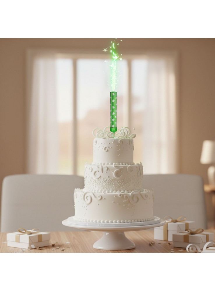 Instruções: Coloque a vela no Bolo com a ponta verde voltada para baixo. Acenda na parte de cima da vela e surgirá, imediatamente, uma chama colorida em forma de efeito Estrelinha.