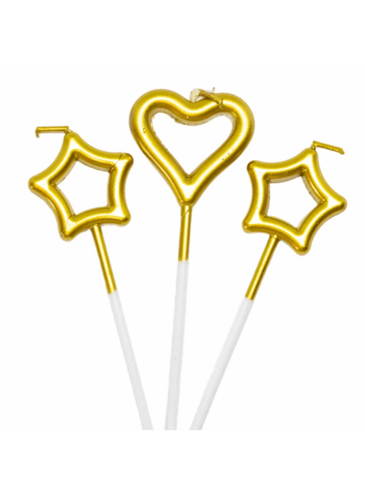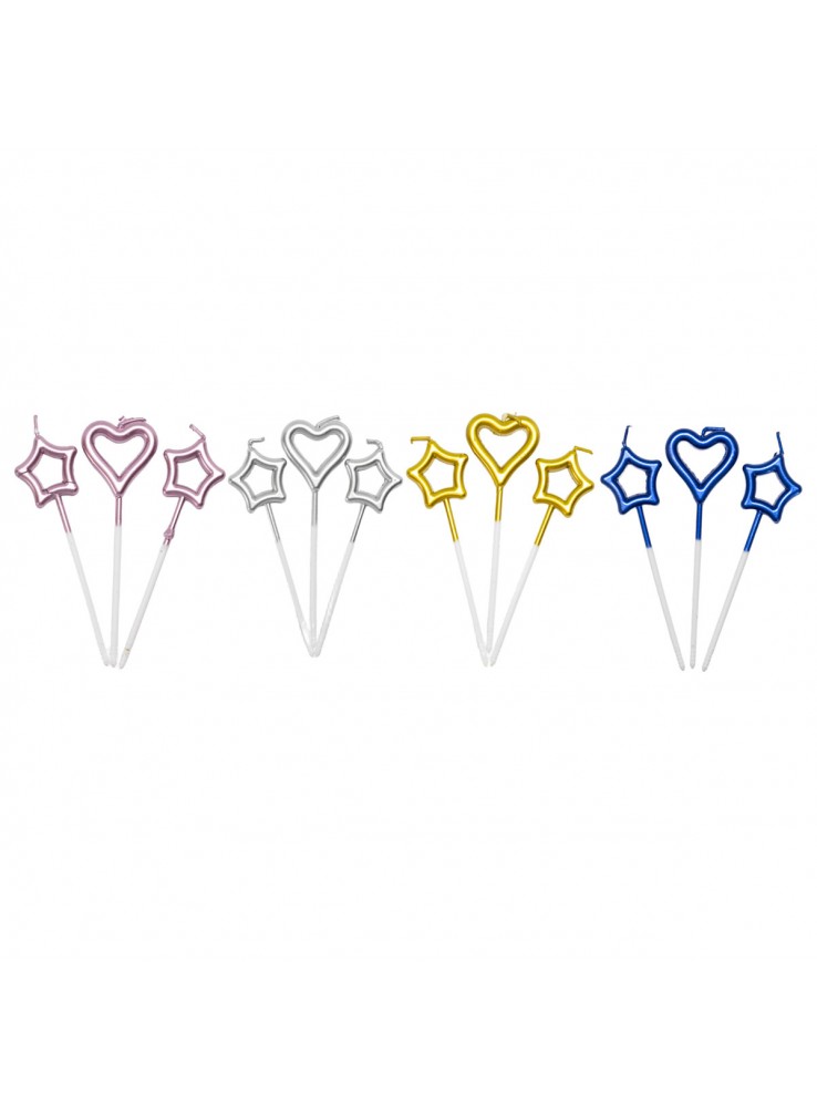 Vela de Aniversário nos formatos de Estrelas e Corações Coloridos