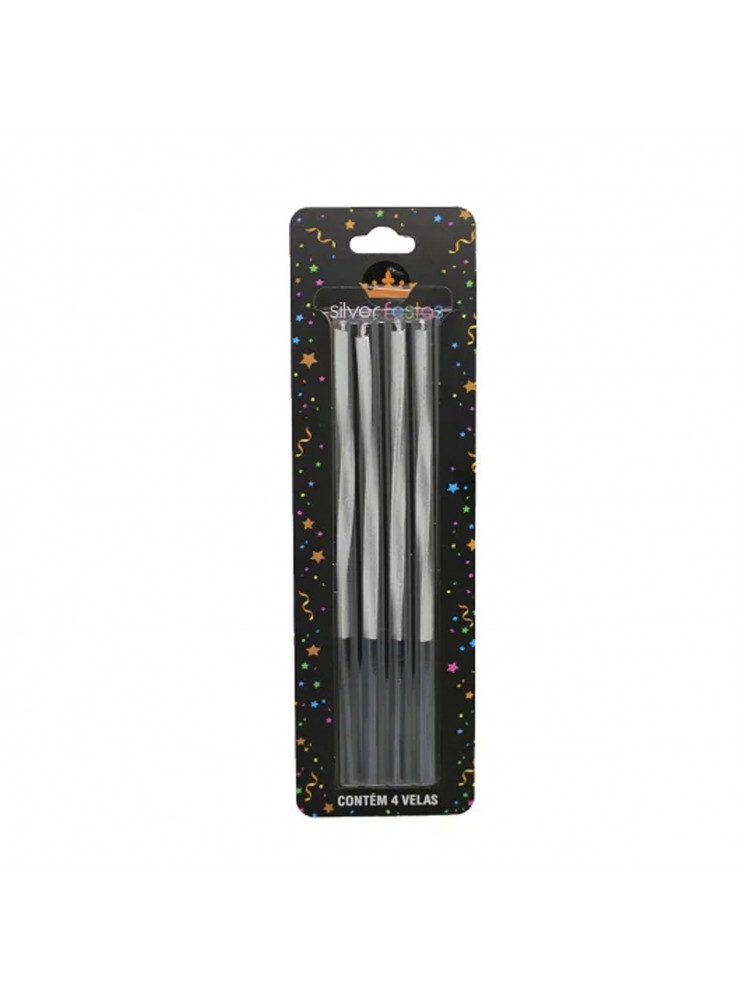 Vela de Aniversário Metalizada Torcida na cor Prata.