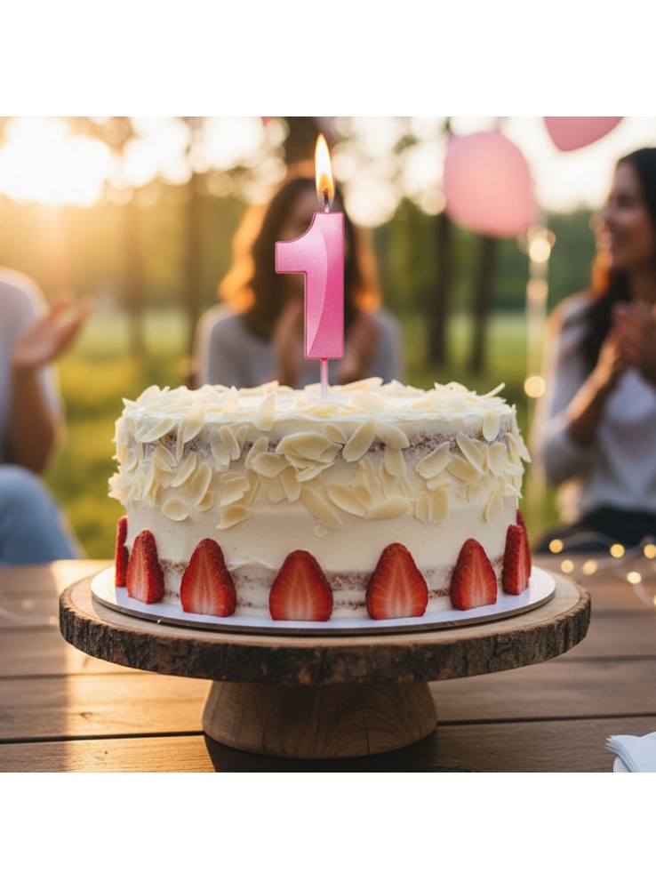Vela de Aniversário Mini Design Número 1 na cor Rosa.
