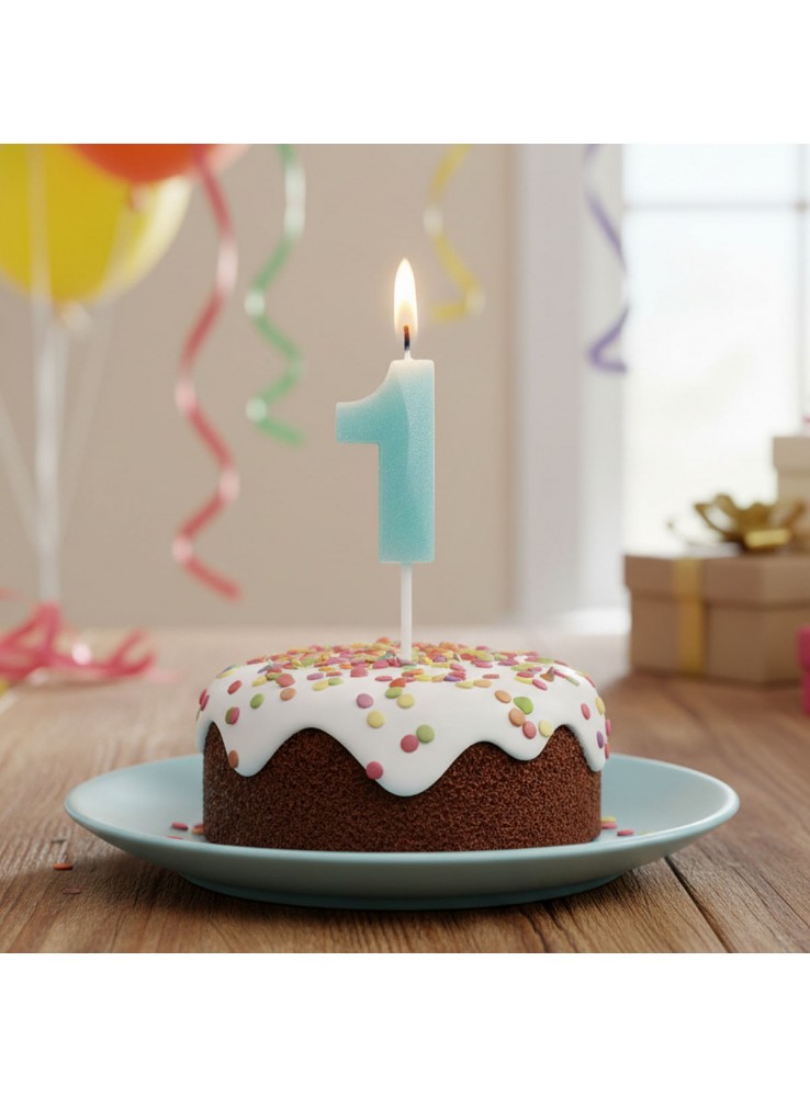 Vela de Aniversário Mini Design Número 1 na cor Tiffany.