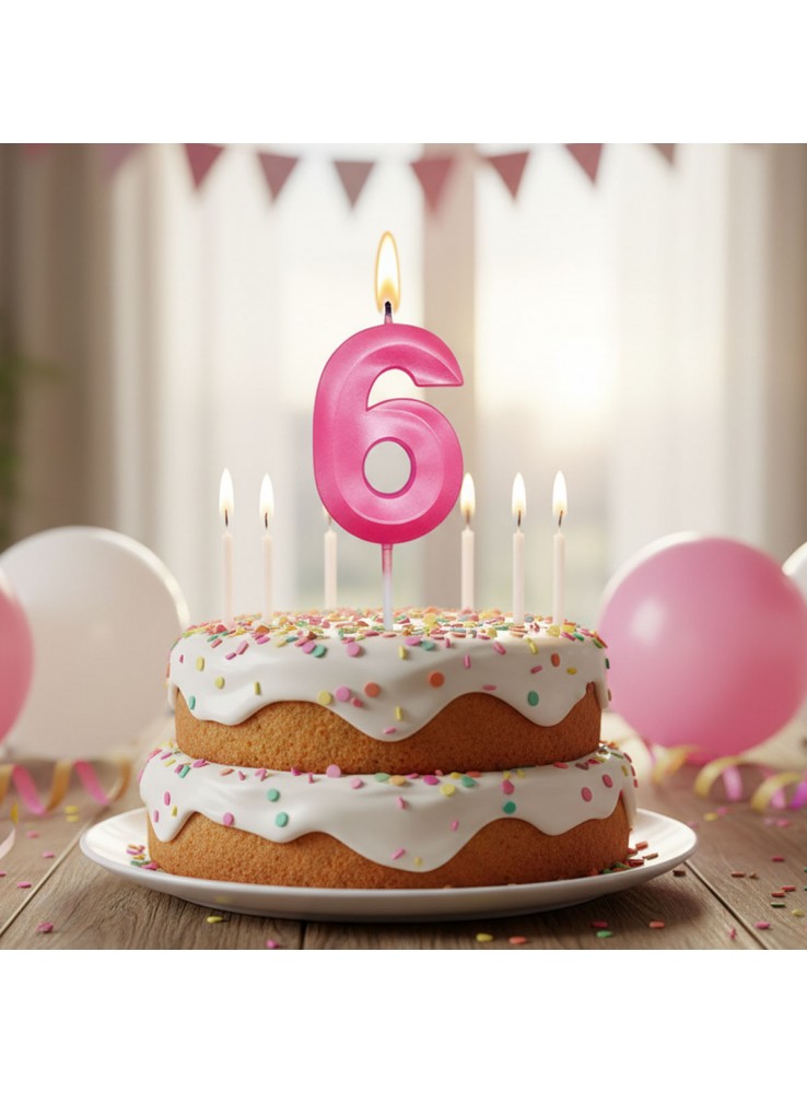 Vela de Aniversário Mini Design Número 6 na cor Rosa.