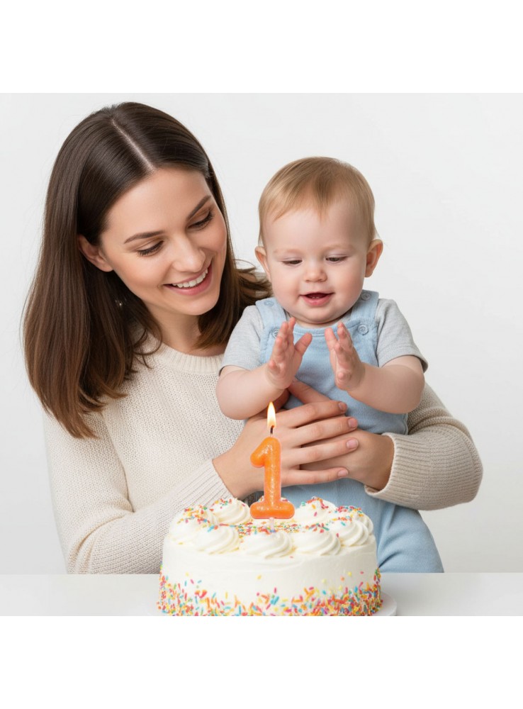 Vela de Aniversário no formato do Número 1 na cor Laranja Neon.