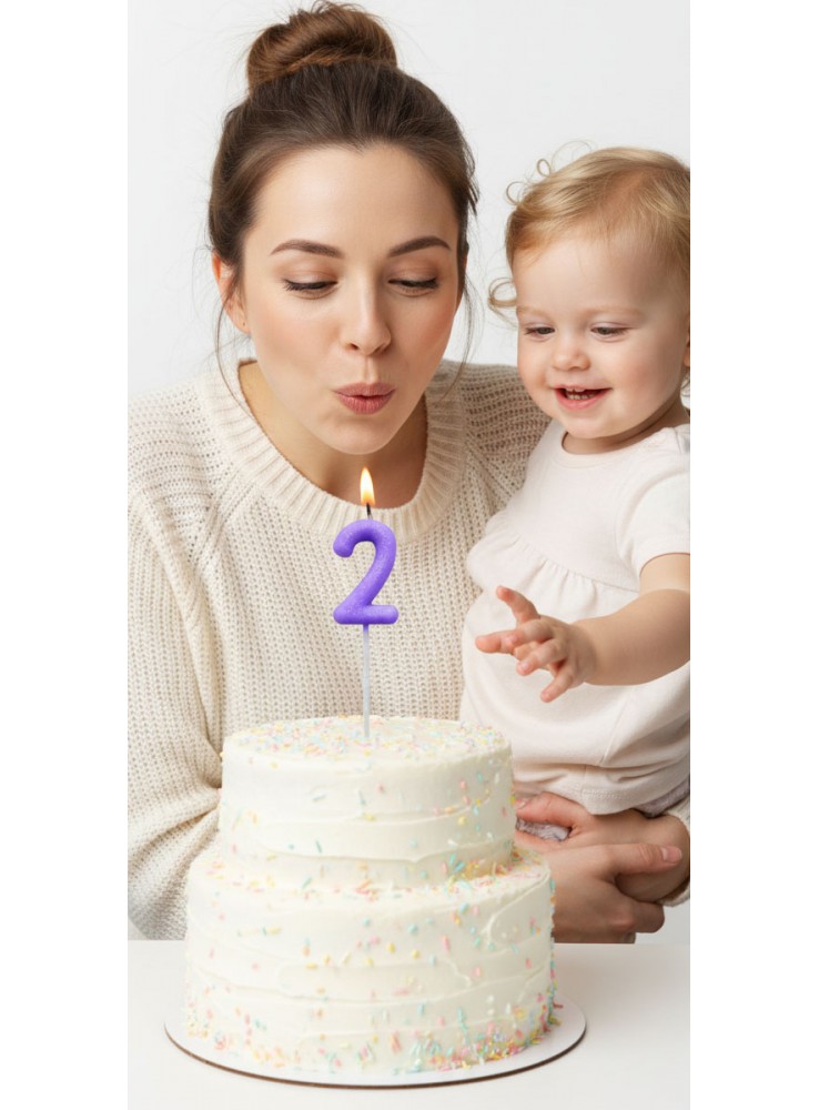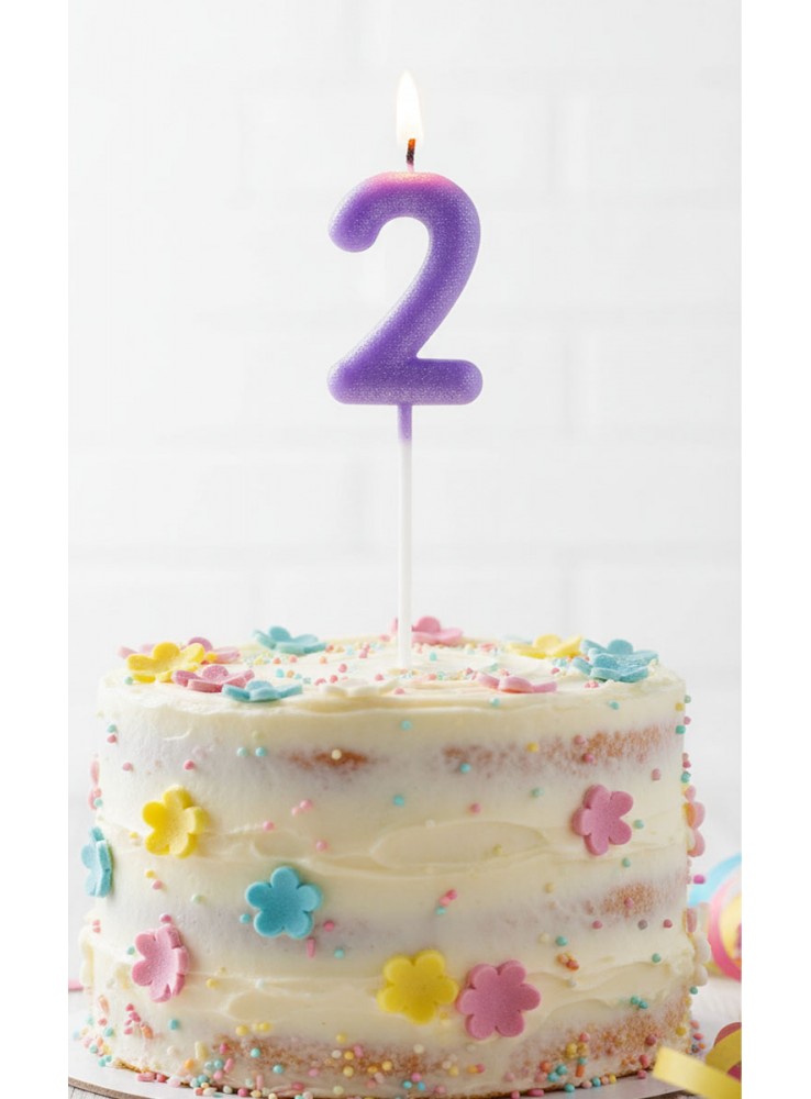 Vela de Aniversário no formato do Número 2 na cor Lilás Candy Colors.
