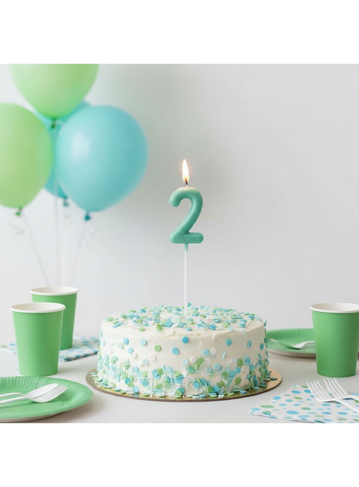Vela de Aniversário no formato do Número 2 na cor Verde Candy Colors.