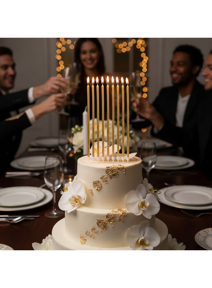 Vela de Aniversário no formato Palito Metalizada na cor Dourada.
