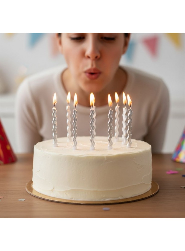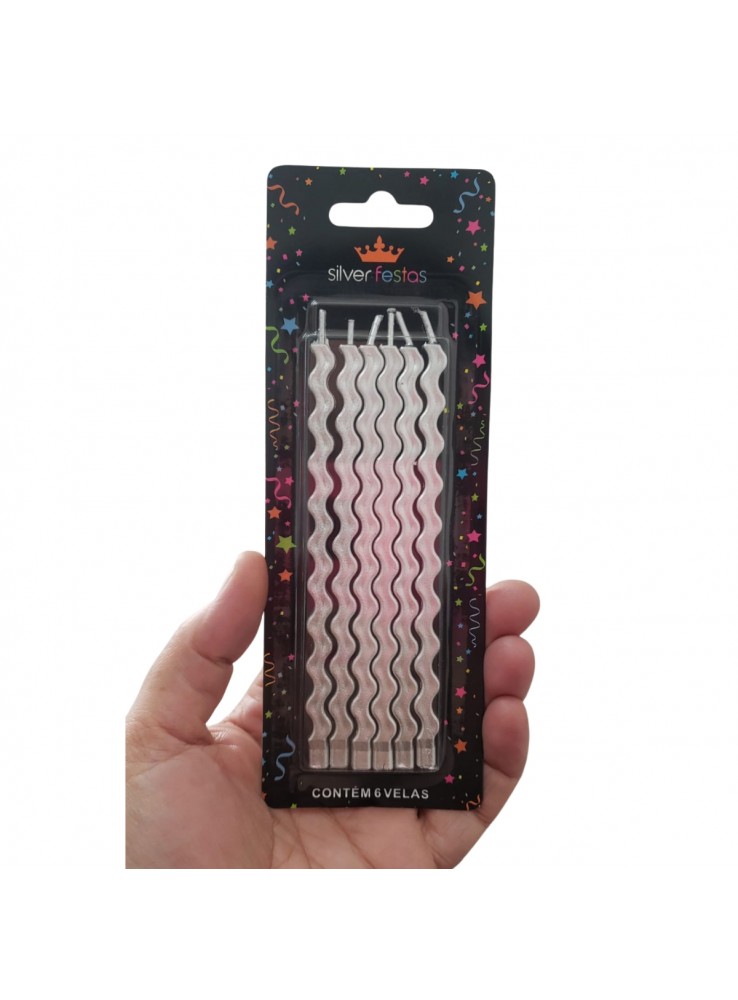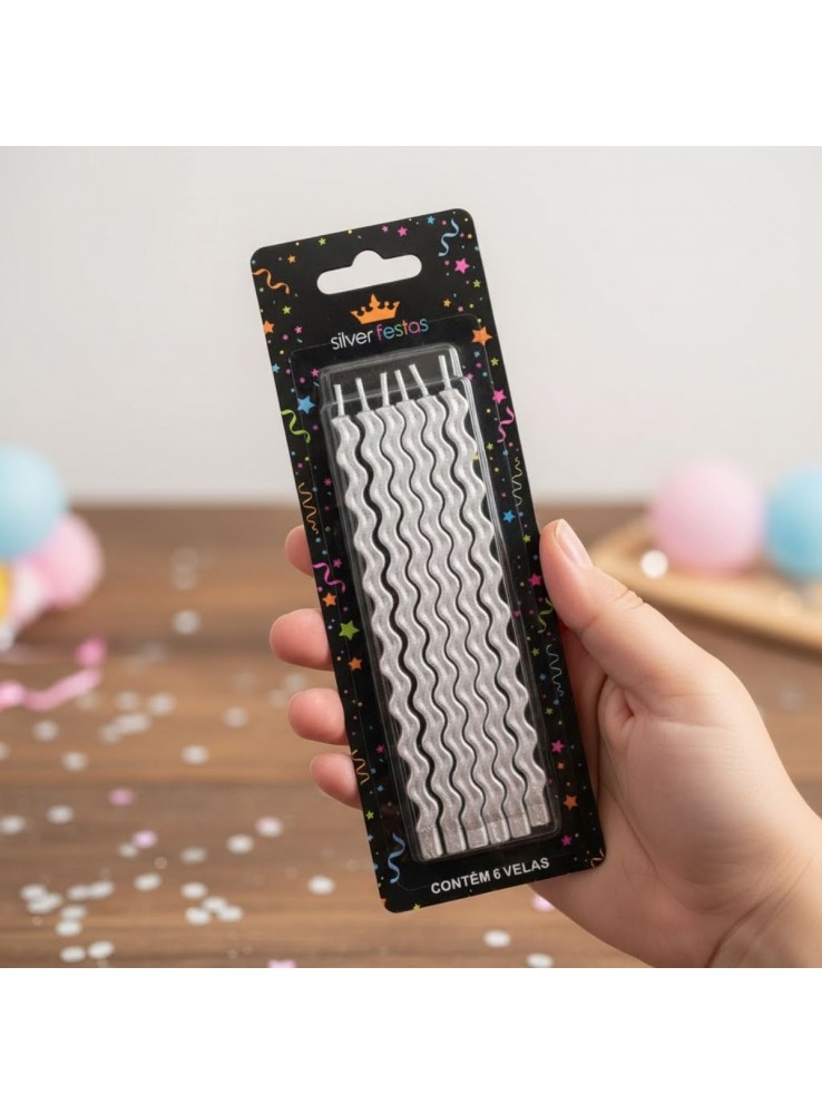 Vela de Aniversário no formato Palito Ondulada Prata Metalizada.