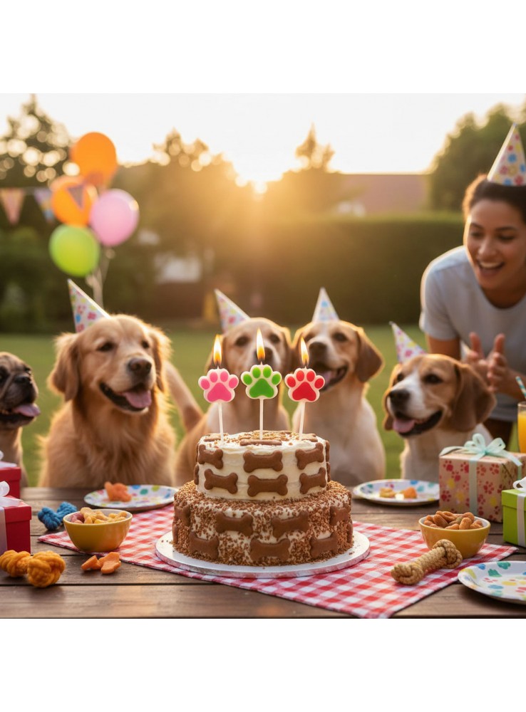 Vela de Aniversário para Bolo no formato de Patinhas de Cachorro Coloridas.