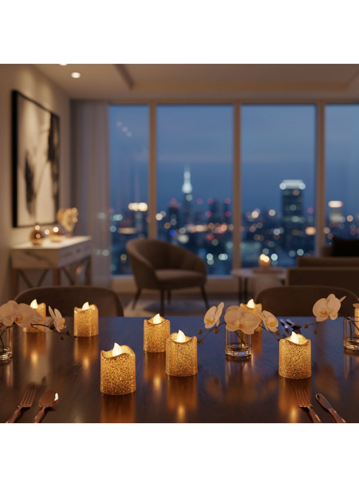 Vela de Led Cilíndrica na cor Dourada com Glitter.
