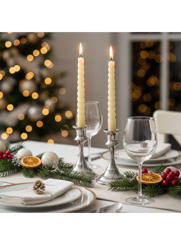 Vela Decorativa Natalina no formato Palito Espiral na cor Creme.