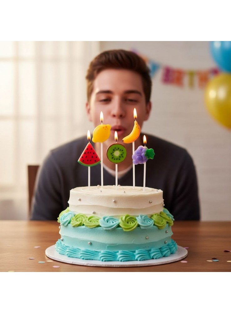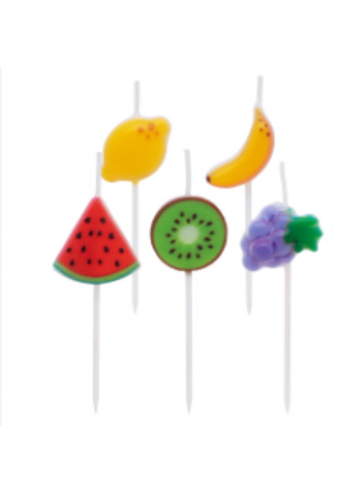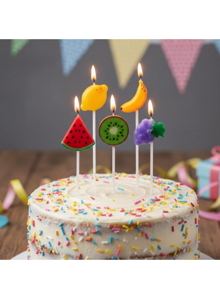 Celebre com estilo e diversão usando este kit de velas de aniversário com tema de frutas, perfeito para decorar bolos de festas infantis e adultas.