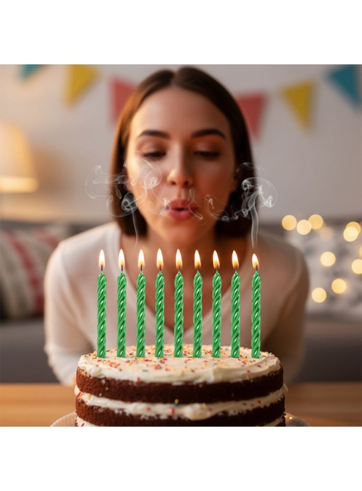 Velas de Bolo no formato de Espiral na cor Verde Metalizado.